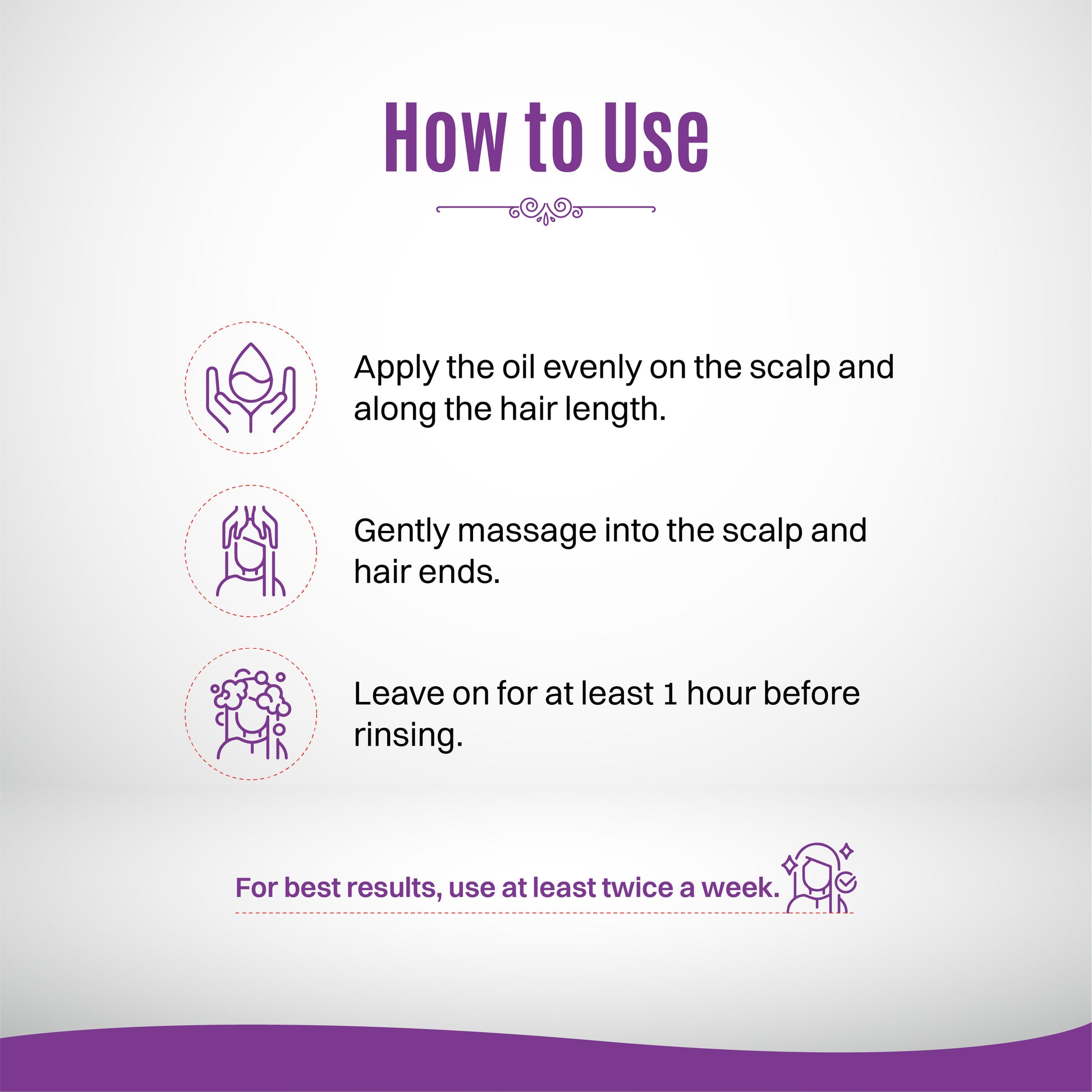 - Massage gently onto the scalp and hair.